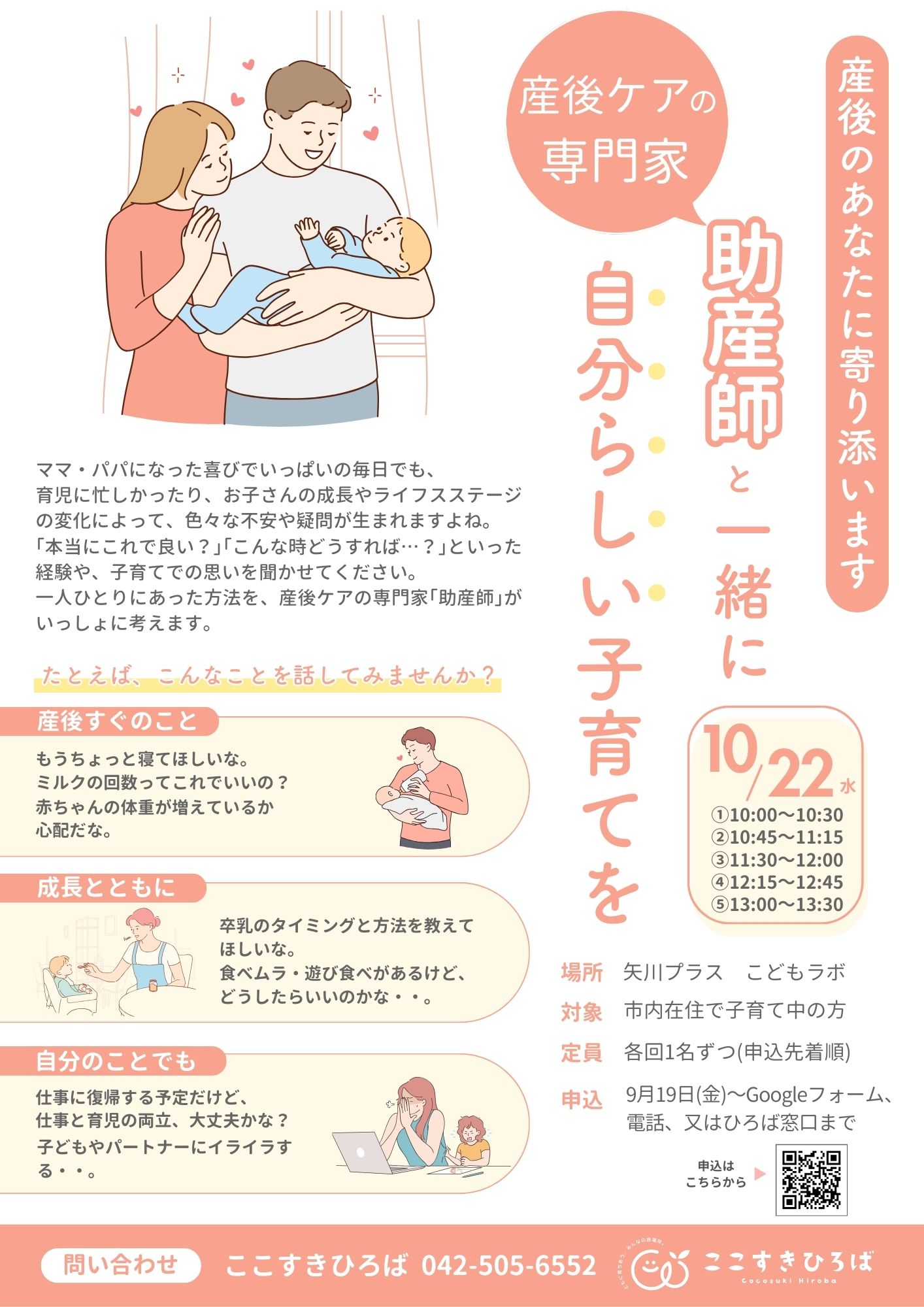 申込期間 | 9月19日(金)~Googleフォーム、電話(042-505-6552)またはここすきひろばの窓口までお申し込みください。 |