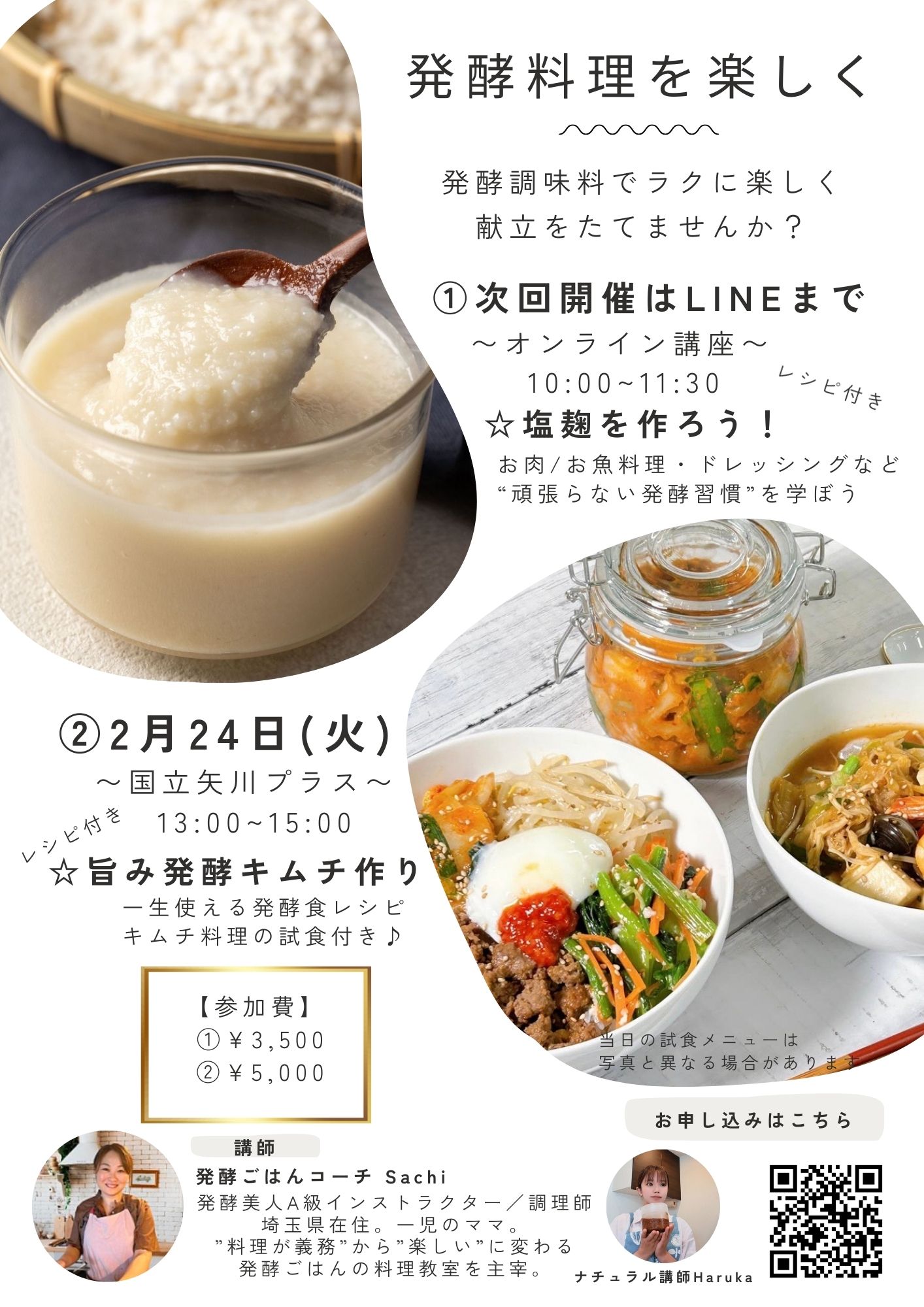 | 内容 | 旨み発酵キムチづくり 一生使える発酵食レシピ キムチ料理の試食付き |