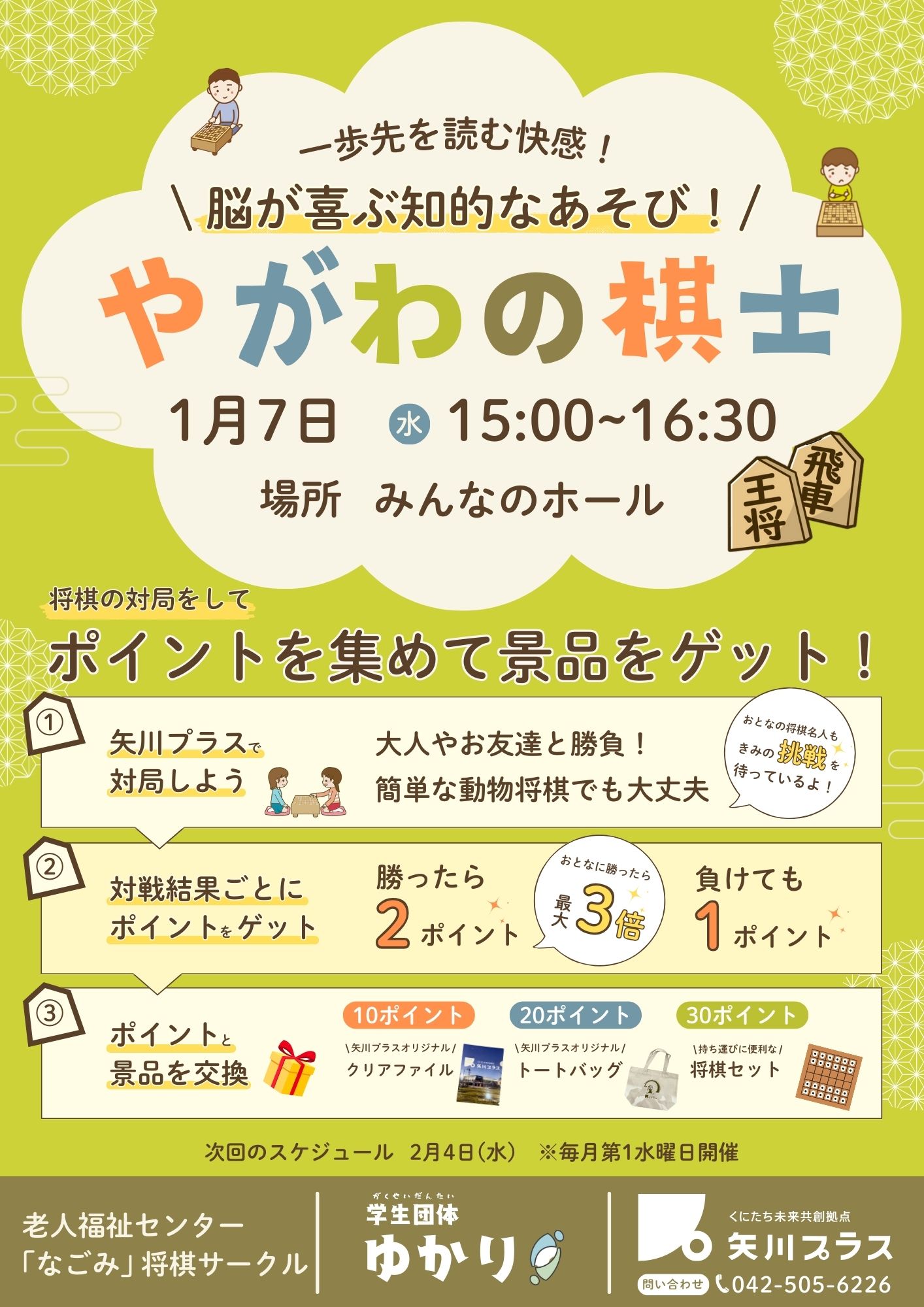 | 主催 | 矢川プラス、老人福祉センター「なごみ」将棋サークル、学生団体「ゆかり」 |