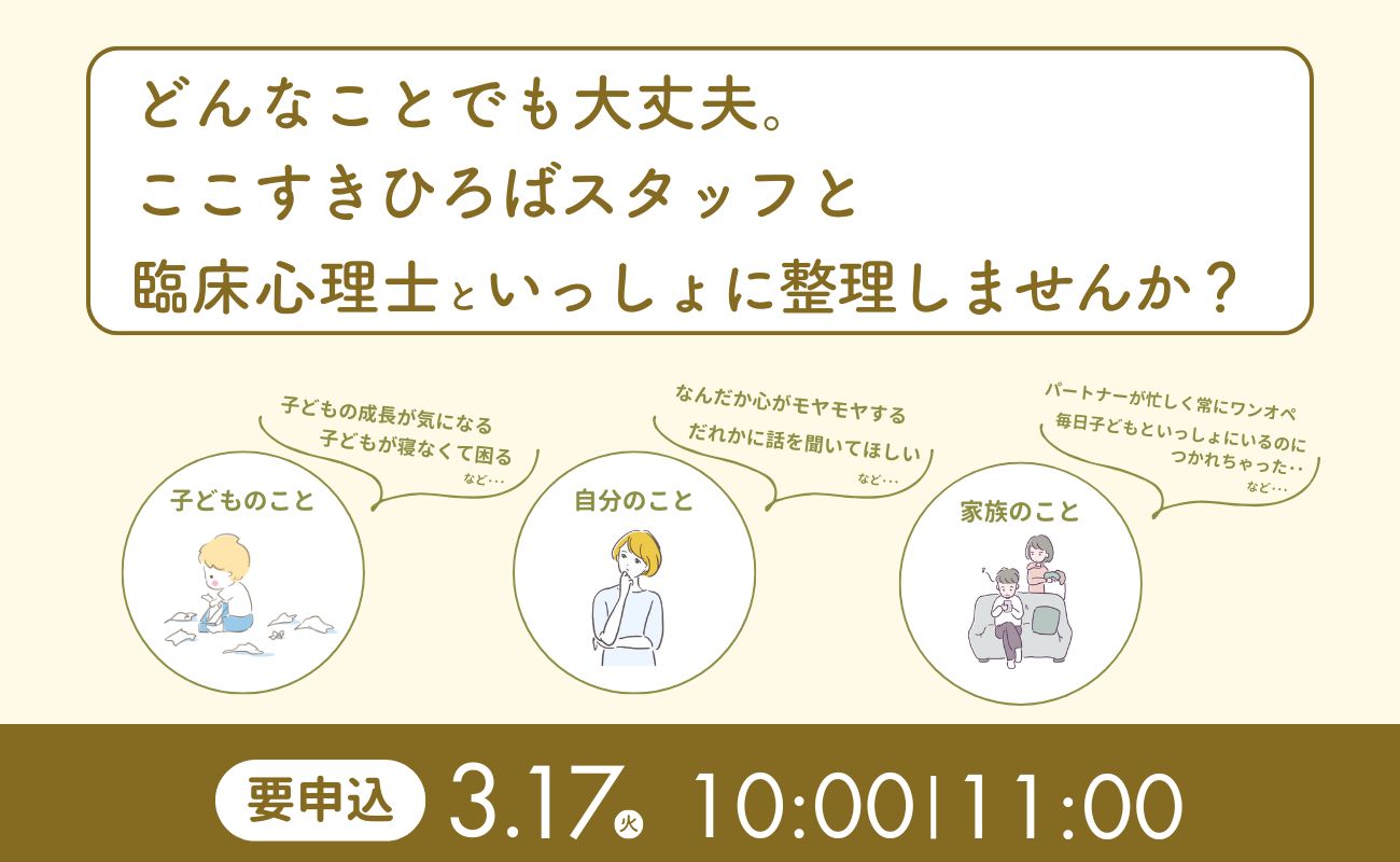 ここすきひろばスタッフの臨床心理士とゆっくり話しましょう。